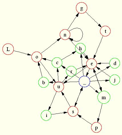Exercice : retrouvez dans le graphe ci-dessus les mots suivants. Il y en a-t-il d'autres ? Y-a-t-il d'autres phrases cachées?