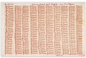 Inspirée (*) par la "Liste d'interjections" lue par les membres de l'OuLiPo lors de la séance "Tentative d'épuisement de l'oeuvre de Georges Perec". Lecture à plusieurs voix qui s'acheva dans une cacophonie trés jubilatoire.